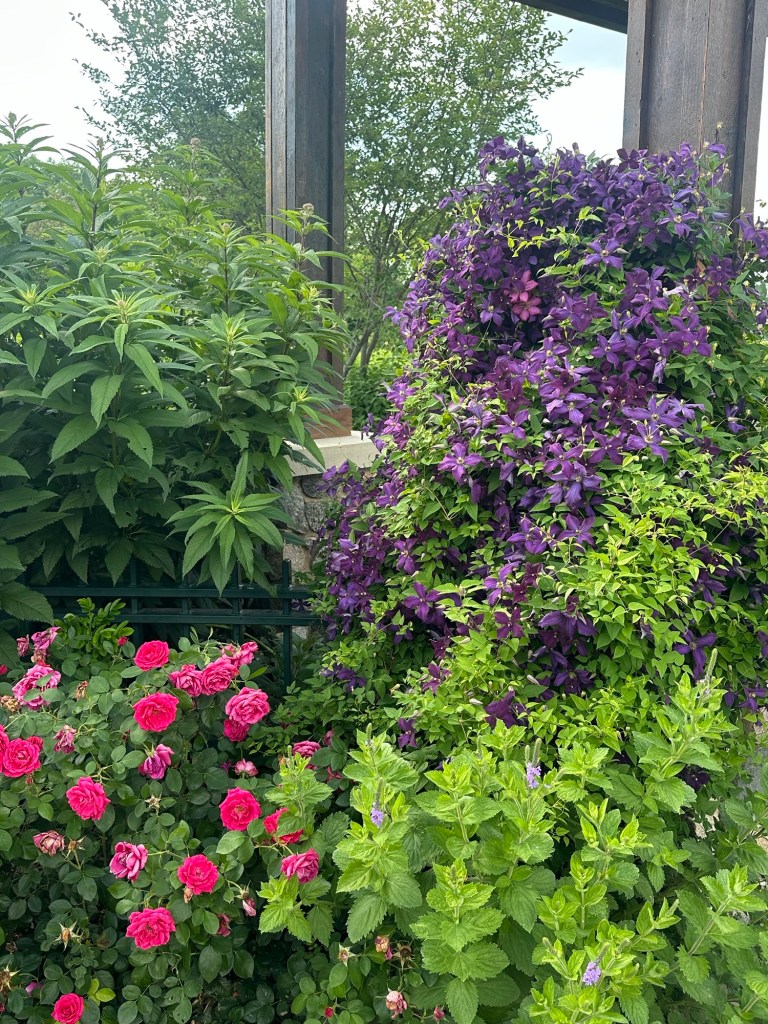 One can find an array of plants and inspiration, especially if your itch is satisfied with prairie style plantings. A massive hill adorned with rudbeckia, milkweed, bluestem and butterfly weed was in its fully glory. It would be a miss on my part to not complement the stunning jackmanii clematis and gorgeous cement planters found in the more formal areas of the garden.