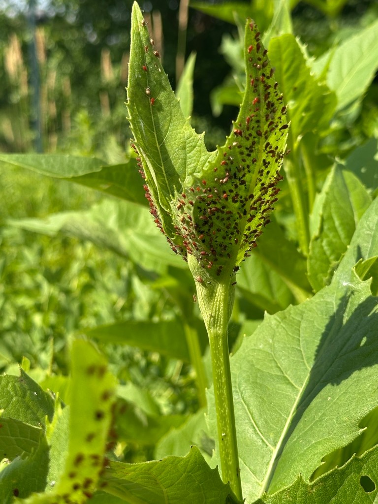 Speaking of the Butterfly Garden, this place practices what it preaches. On this hot July day, there are thousands if not millions of red aphids feasting on the tips of the cup plants found throughout Millennium Garden. Nature in its full glory feels welcomed in this place.